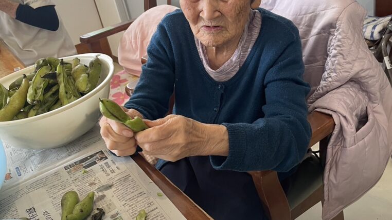 スタッフブログ令和7年5月20日 グループホームたかき そら豆皮むき大会