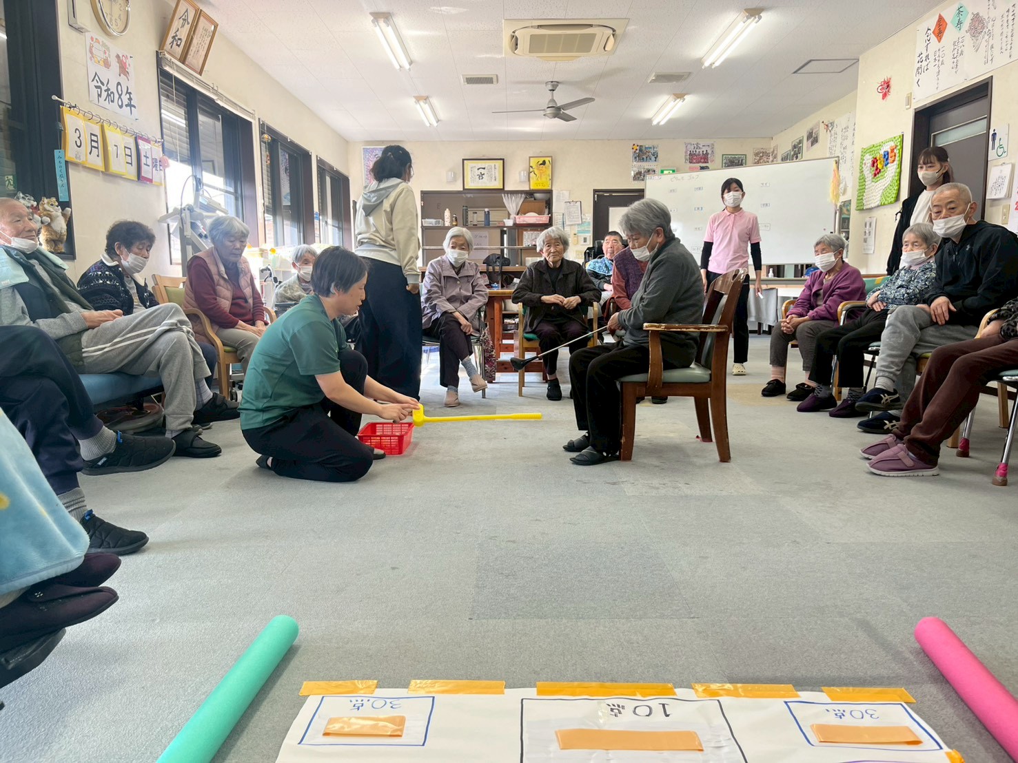 疲れてしまうので、途中、体操をしたりおしゃべりしたりぼちぼち行なっています