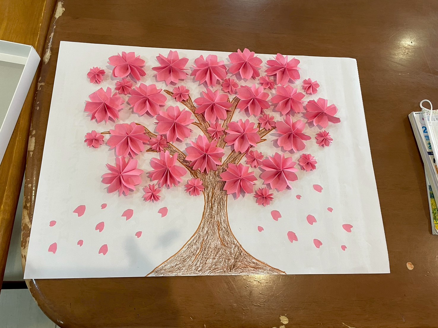 「暖色と寒色のバランスがいいね」と話しながら折り紙を組み立てて鯉のぼりを作ったり、目玉シールを貼る向きで、上を向いたり下を向いたりしている表情豊かな鯉のぼりが出来ました