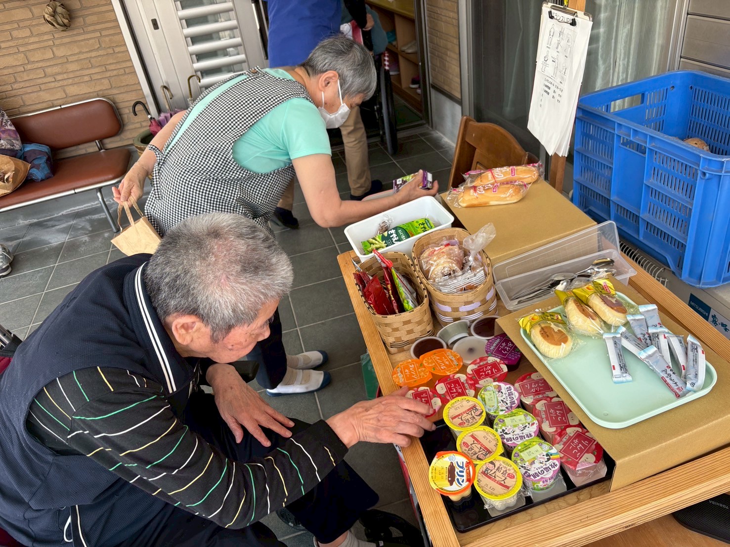 令和7年5月15日 おやつの日スタッフブログ 2025.05.16 この記事は約1分で読めます。お疲れ様です。ひまわりです。本日はおやつを外で食べました。外に出ると天気がいいね!風が気持ちいいね!と会話が弾まれみなさん談笑されてました😊散歩をされたり、風の丘に遊びに行かれたりそれぞれの時間を過ごされました。厨房の方々、美味しいおやつをありがとうございました✨
