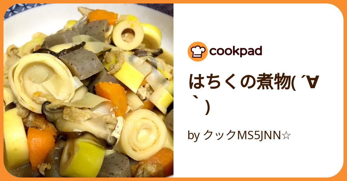 「はちくの煮物( ´∀`)」の作り方。はちくで、煮物を作りました。 しいたけや油揚げを入れる事でどんどん深みが出て美味しくなります♪ 材料: はちく、にんじん、しいたけ